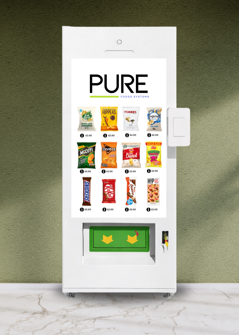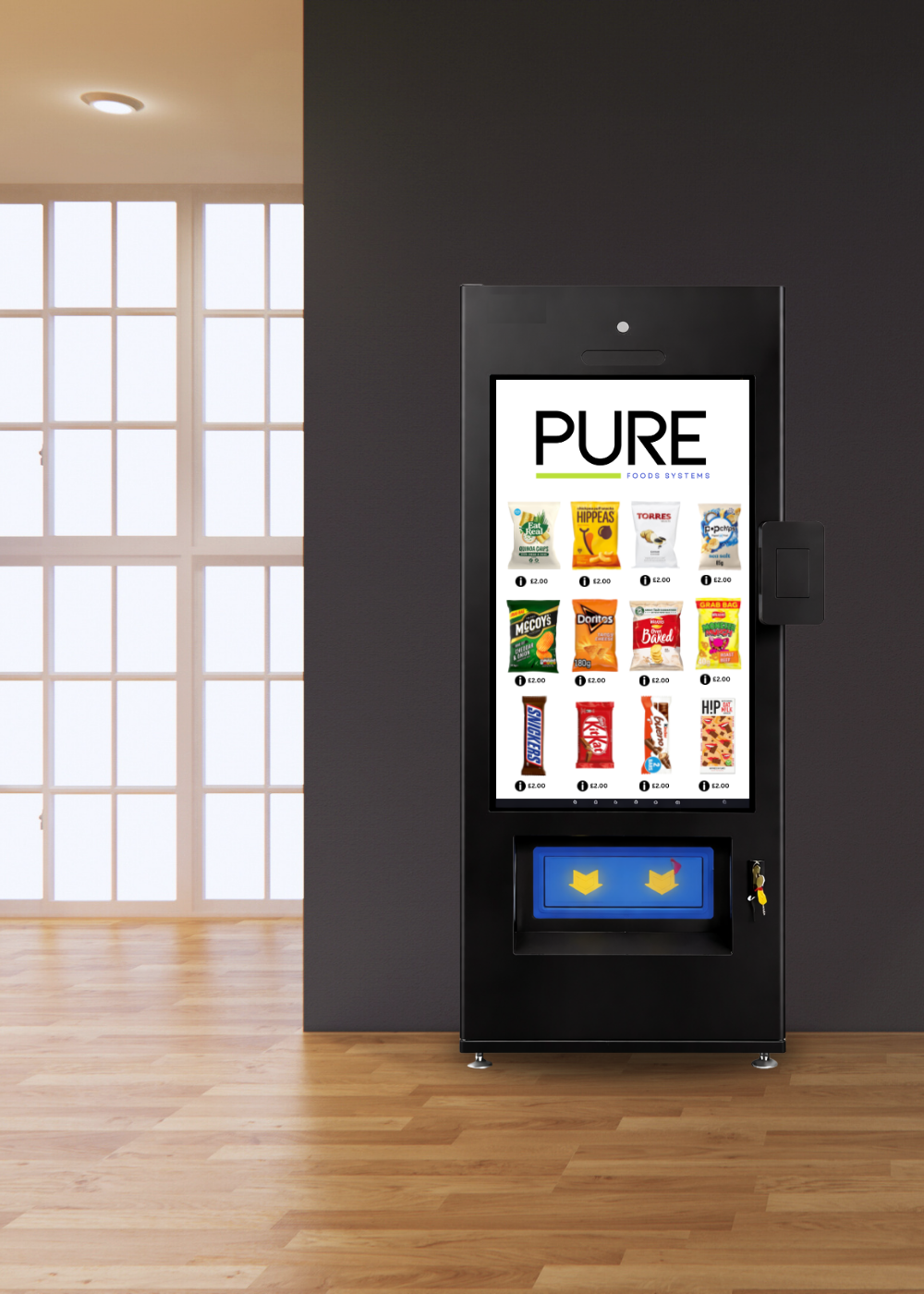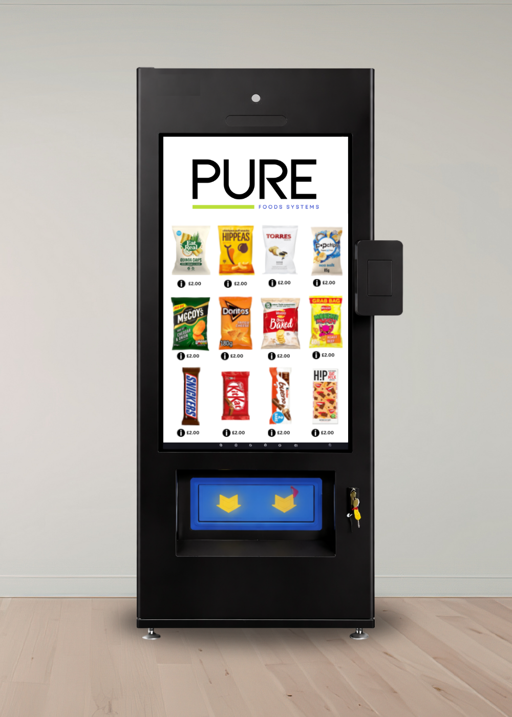 The Smart Touch Screen Mini is the slimline version of our flagship smart vending unit — offering powerful performance, cloud connectivity, and a modern 49″ touchscreen interface in a compact, door-friendly body.